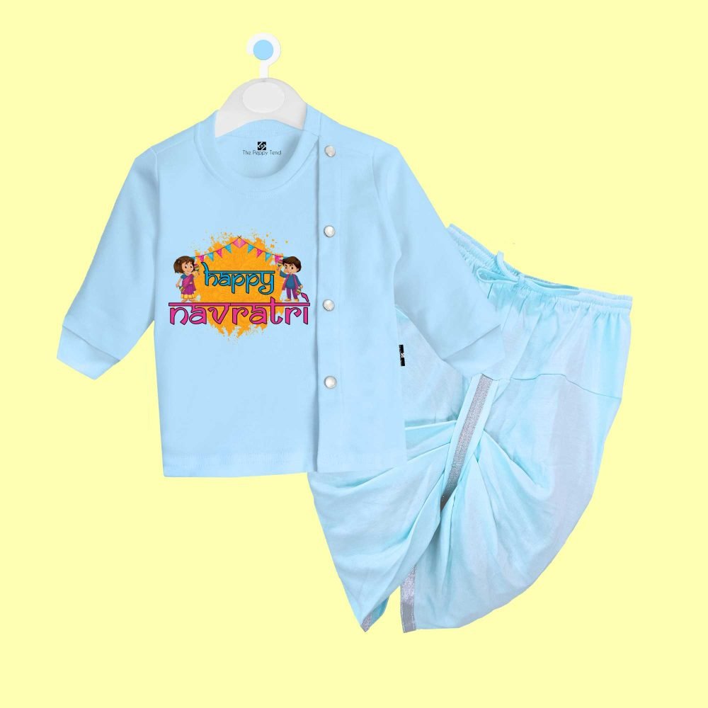 The Peppy Tend 100% Cotton Knit Full Sleeves Happy Navratri Printed Dhoti Kurta Set
