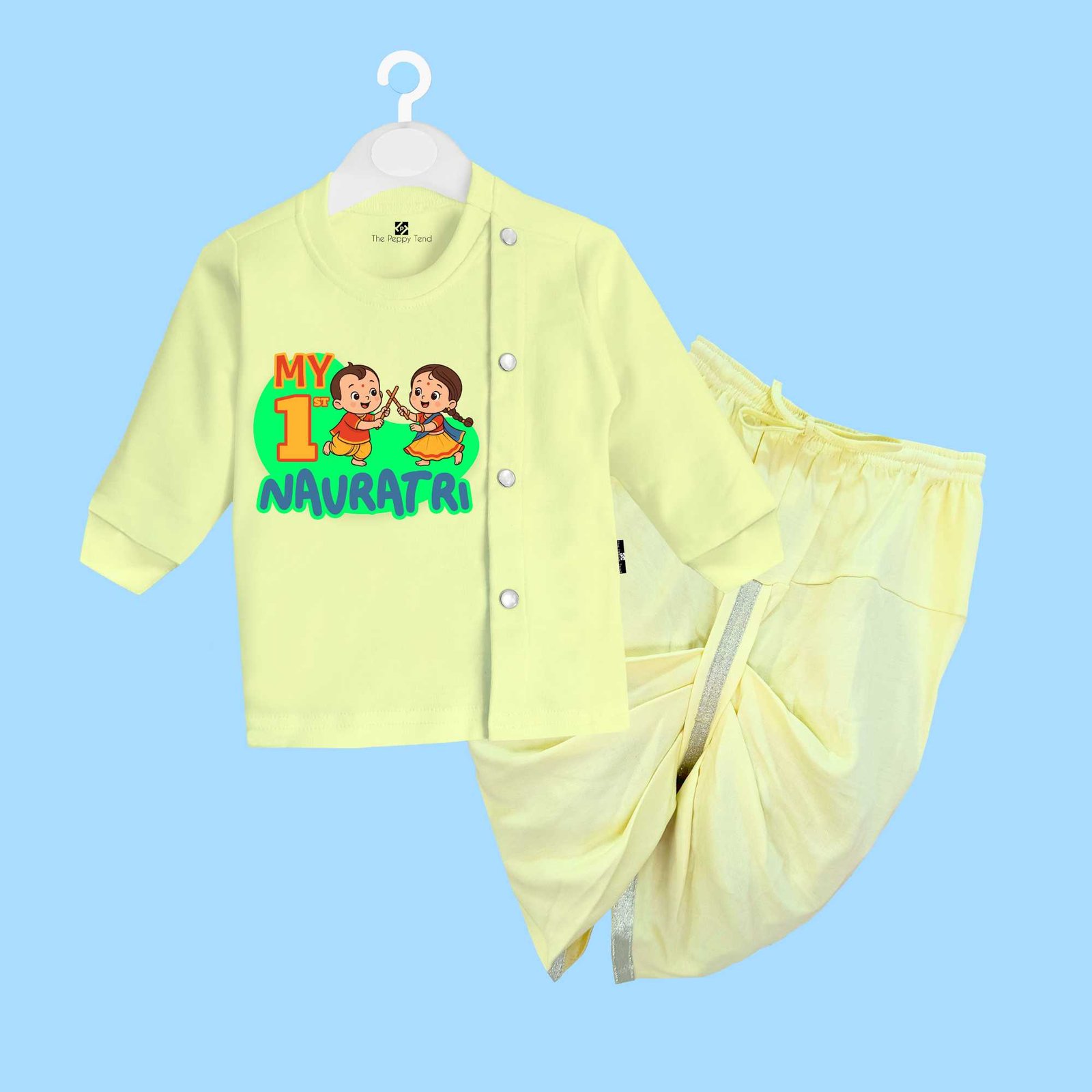 The Peppy Tend 100% Cotton Knit Full Sleeves My 1st Navratri Printed Dhoti Kurta Set