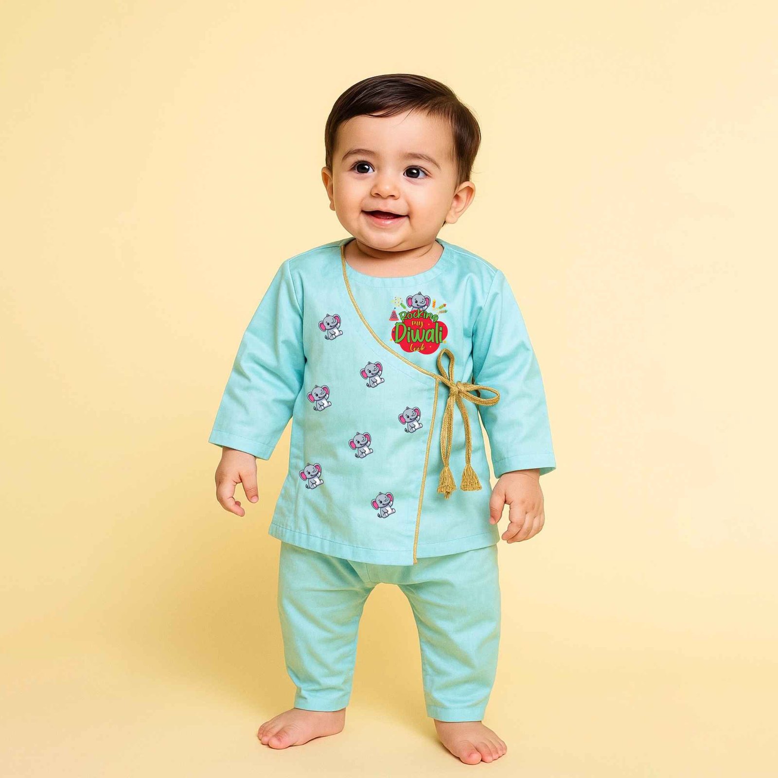 The Peppy Tend 100% Cotton Knit Full Sleeves Rocking My Diwali Look Printed Angrakha Kurta Pajama Set