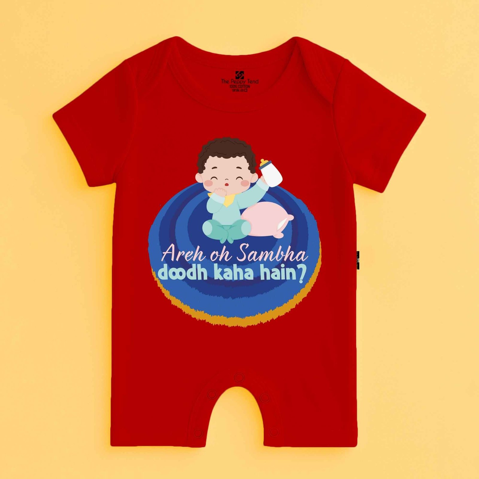 The Peppy Tend 100% Cotton Knit Half Sleeves Areh Oh Sambha Doodh Kaha Hai ? Printed Half Romper