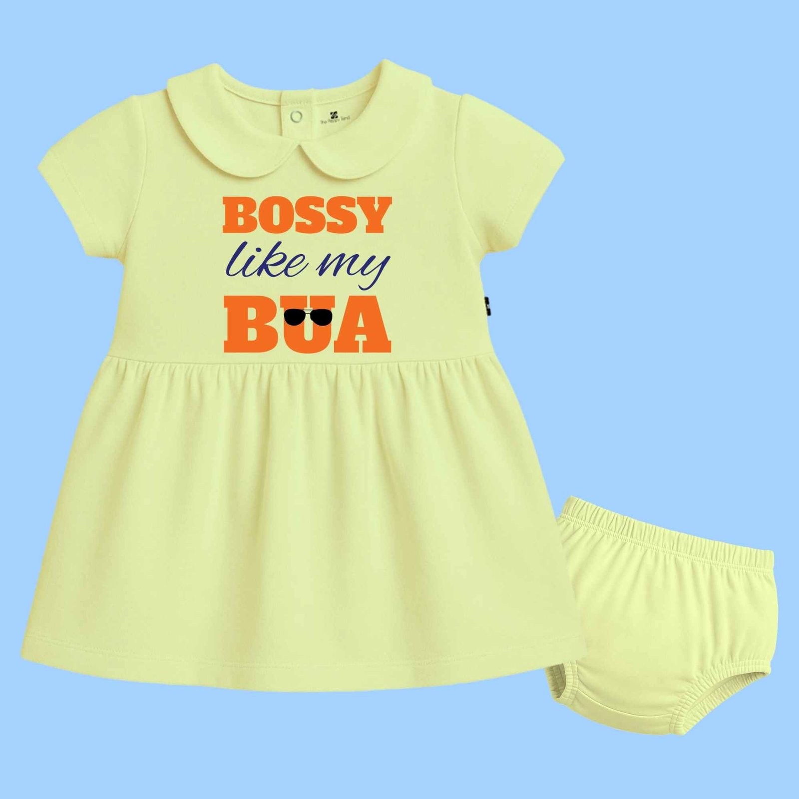 The Peppy Tend 100% Cotton Knit Half Sleeves Bossy Like My Bua Printed Frock with Bloomers