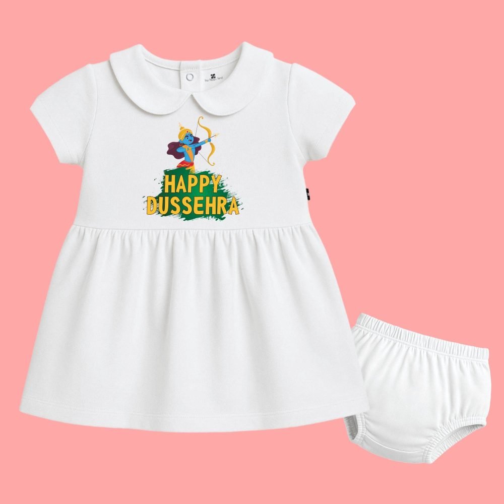 The Peppy Tend 100% Cotton Knit Half Sleeves Happy Dussehra Printed Frock with Bloomer