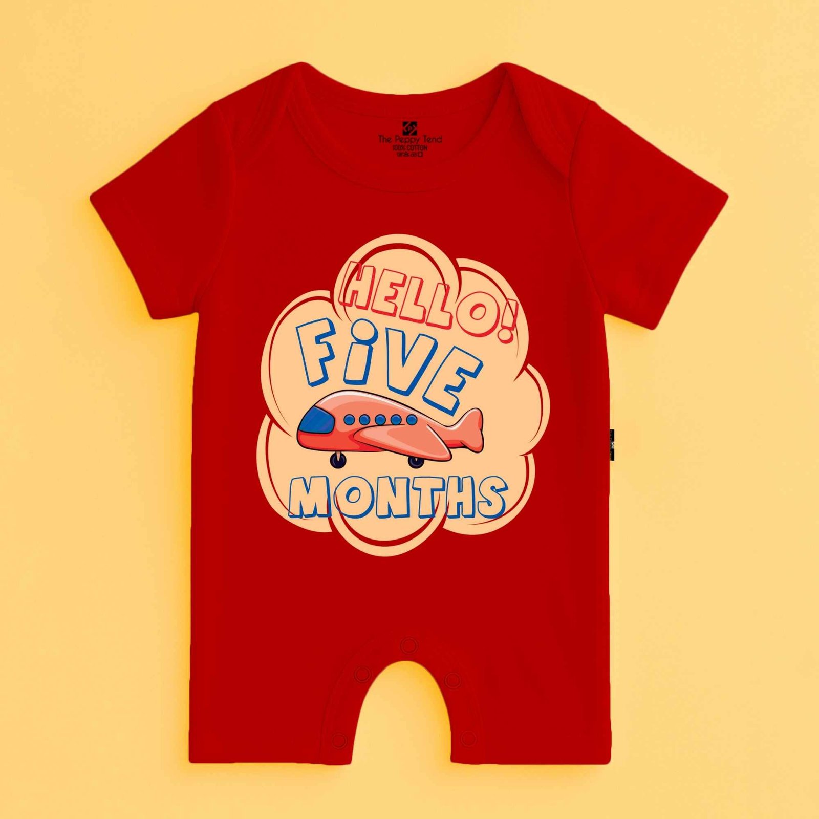 The Peppy Tend 100% Cotton Knit Half Sleeves Hello 5 Months Printed Half Romper
