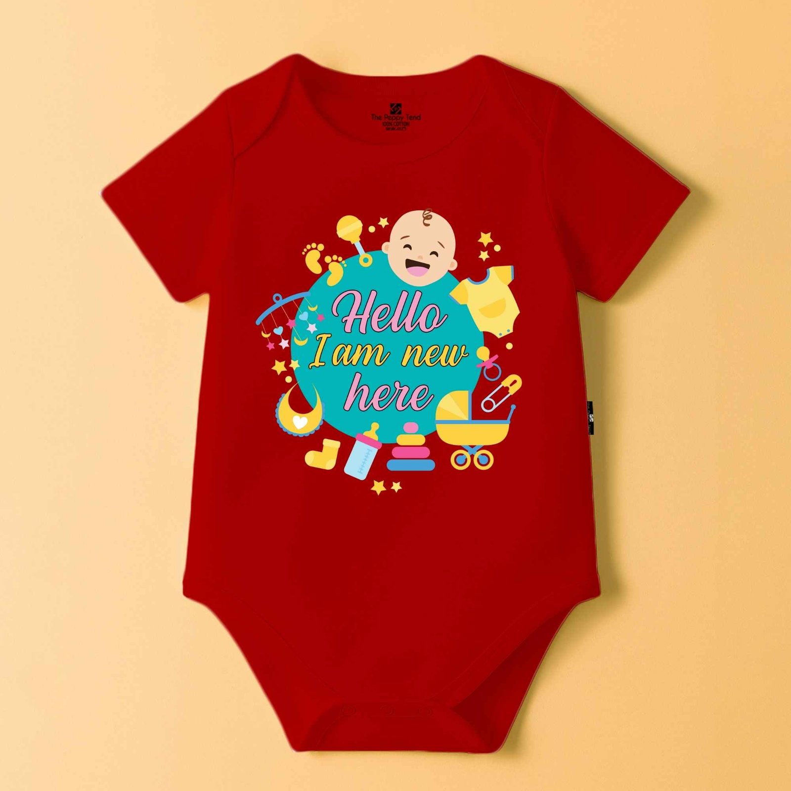 The Peppy Tend 100% Cotton Knit Half Sleeves Hello I am New Here Printed Half Onesie