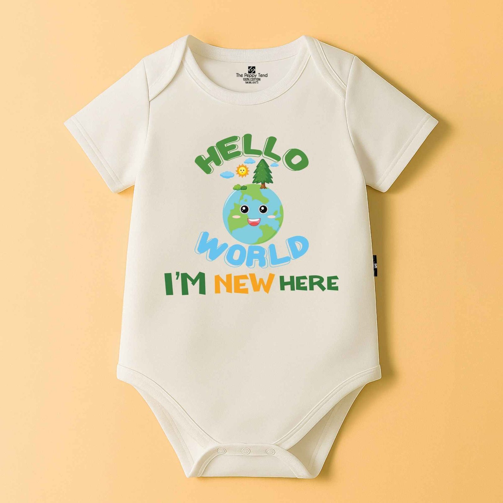 The Peppy Tend 100% Cotton Knit Half Sleeves Hello World I’M New Here Printed Half Onesie