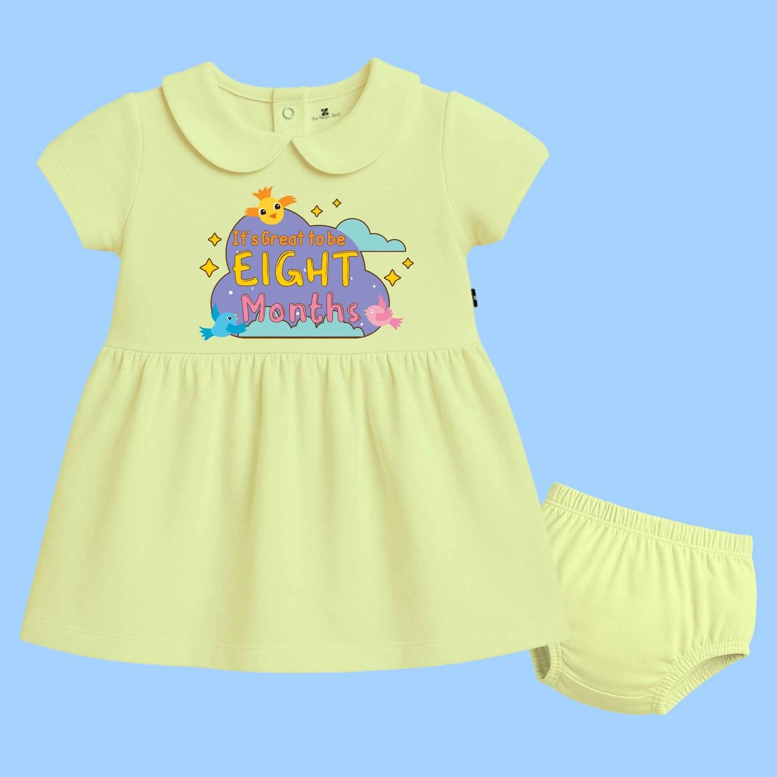 The Peppy Tend 100% Cotton Knit Half Sleeves It’s Great To Be 8 Months Printed Frock with Bloomers