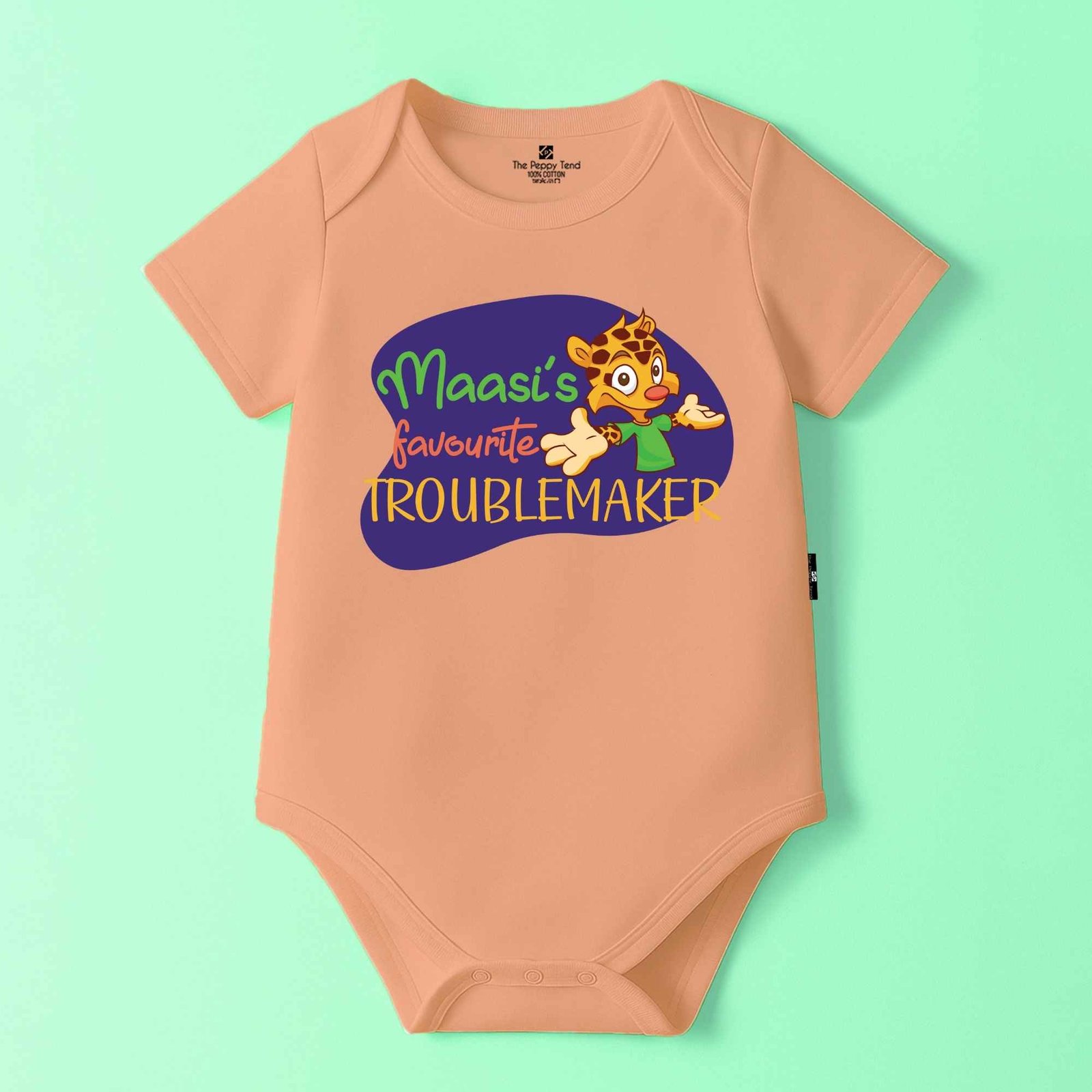 The Peppy Tend 100% Cotton Knit Half Sleeves Maasi’s Favourite Trouble Maker Printed Half Onesie