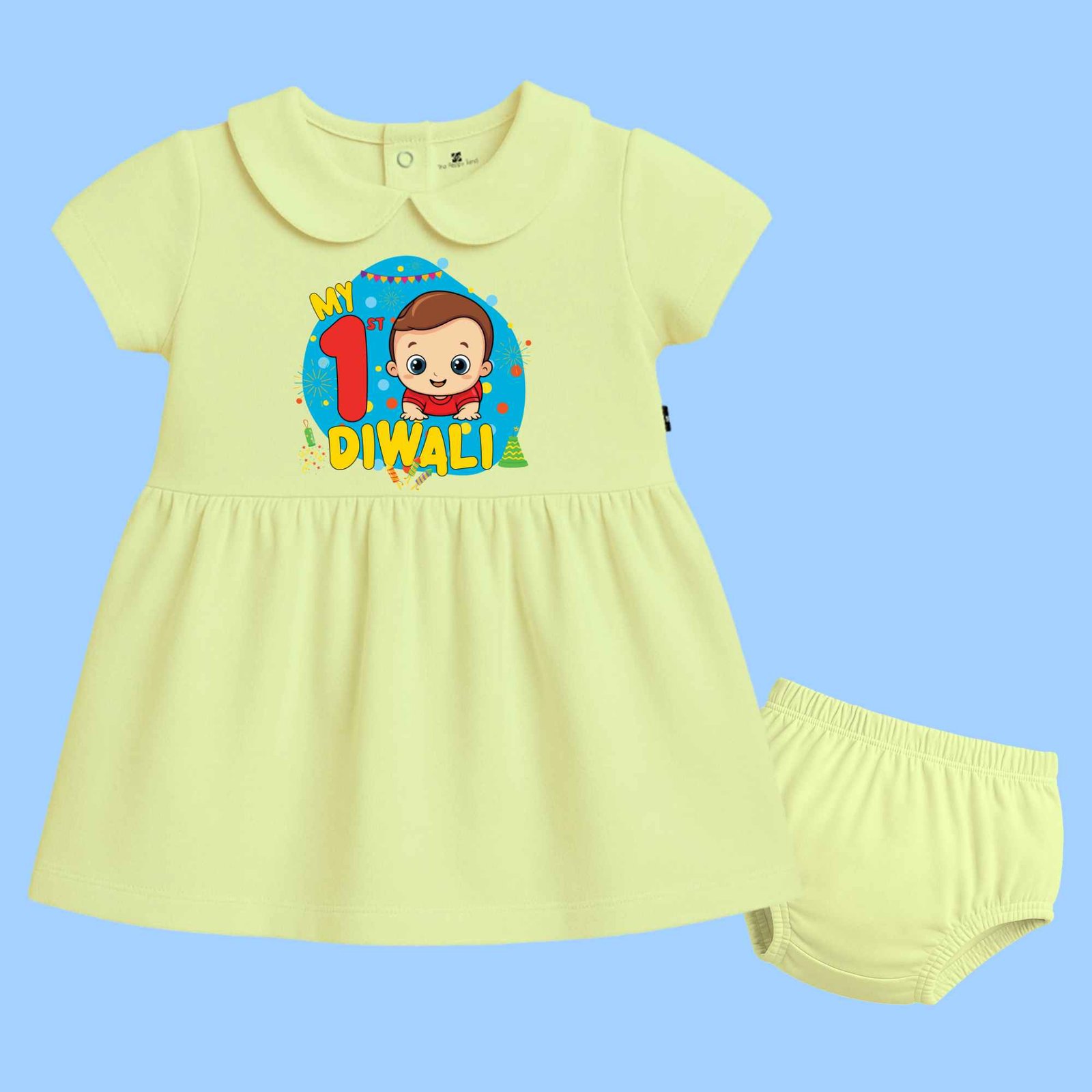 The Peppy Tend 100% Cotton Knit Half Sleeves My 1st Diwali Printed Frock With Bloomers