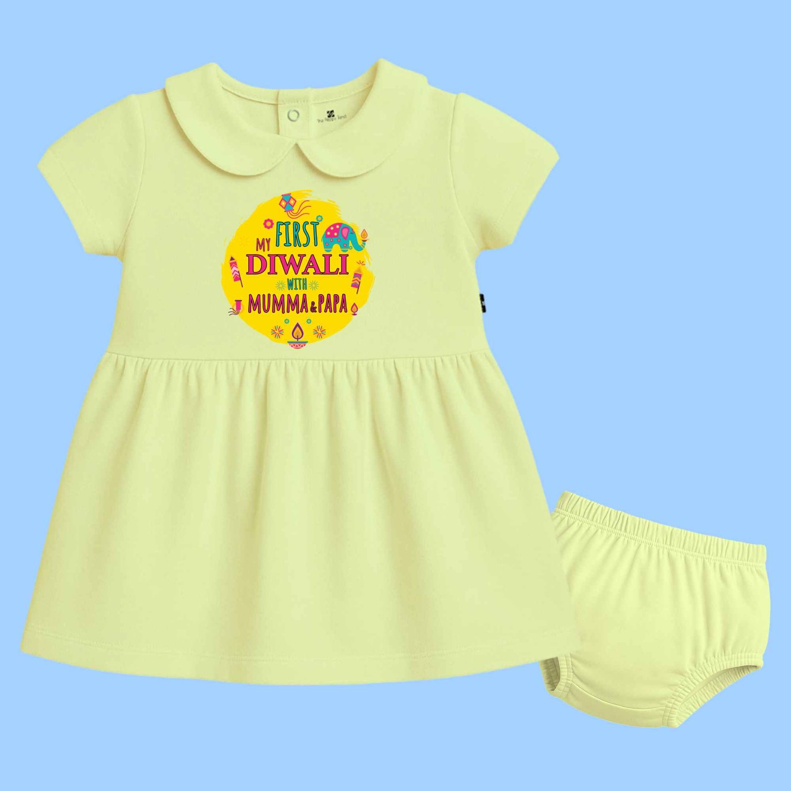 The Peppy Tend 100% Cotton Knit Half Sleeves My First Diwali With Mumma Papa Printed Frock With Bloomers
