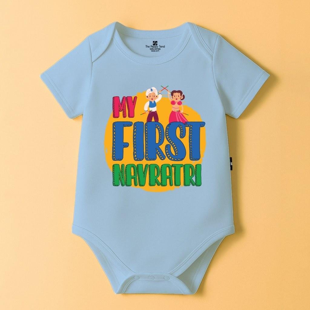 The Peppy Tend 100% Cotton Knit Half Sleeves My First Navratri Printed Half Onesie