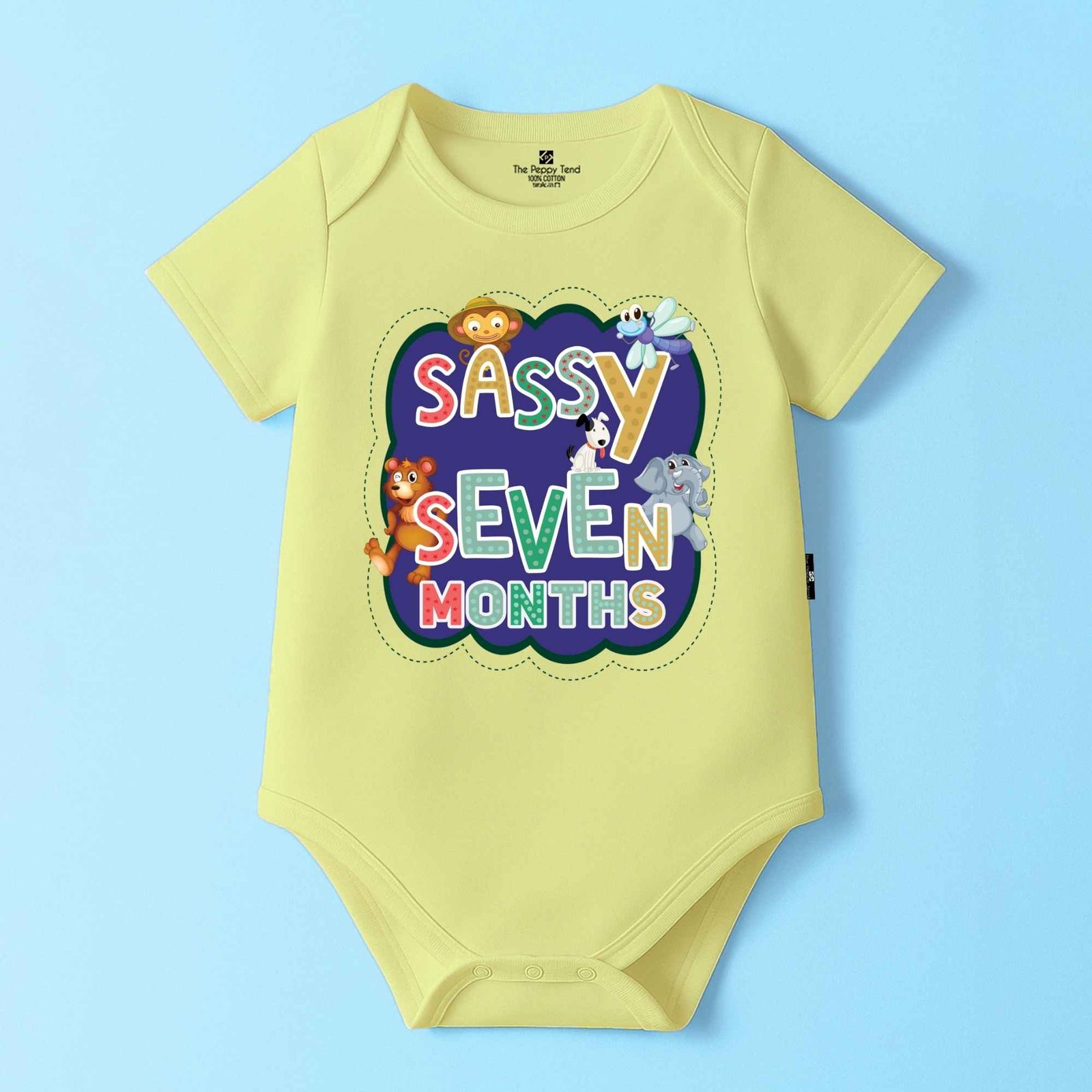 The Peppy Tend 100% Cotton Knit Half Sleeves Sassy 7 Months Printed Half Onesie