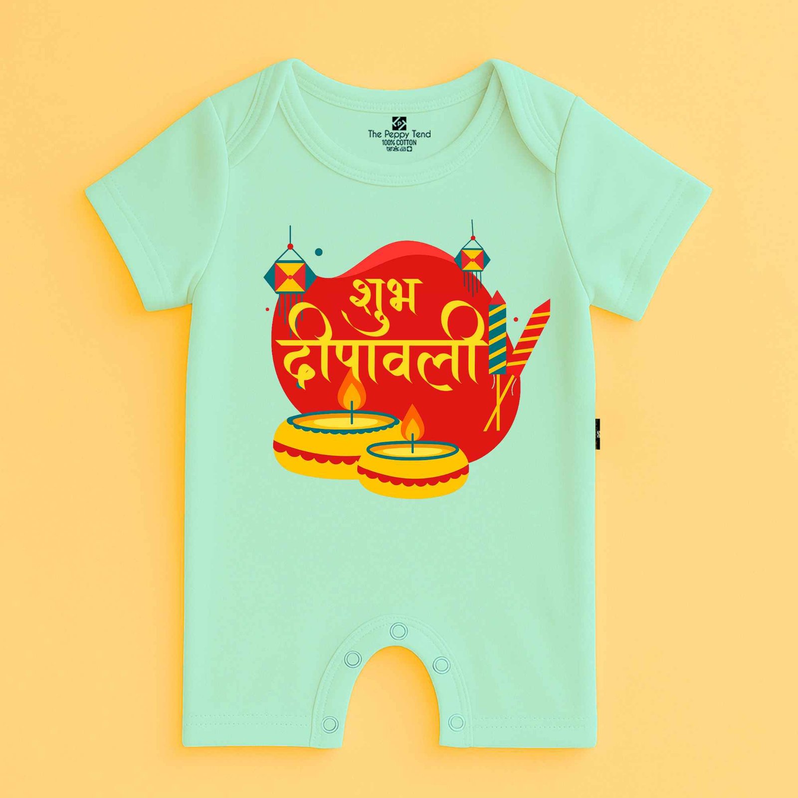 The Peppy Tend 100% Cotton Knit Half Sleeves Shubh Deepawali Hindi Printed Half Romper